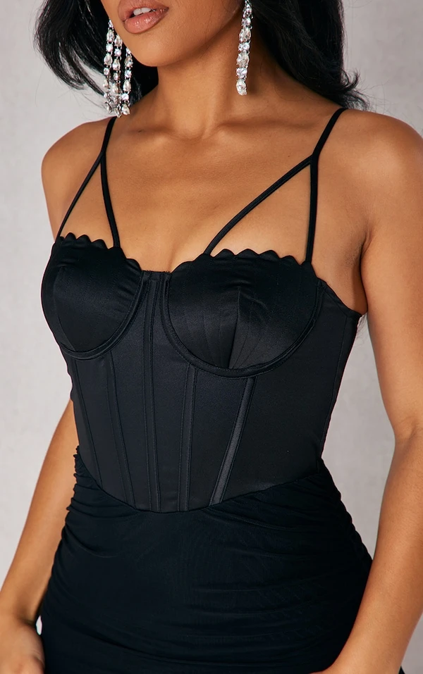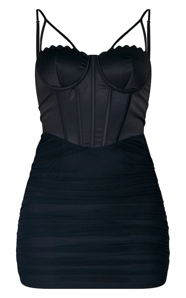 Mini robe corset noire en mesh à bonnets coquilles