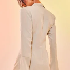 Robe Blazer Satinée Blanche à Dos Découpé Et Franges Strassées