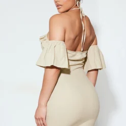 Robe Moulante Effet Lin Pêche à Ourlet Frangé Et Buste Noué