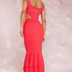 Robe Moulante Drapée Orange Effet Lin Asymétrique à Découpe