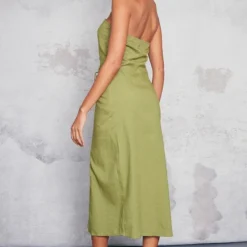 Robe Moulante Asymétrique Gris Pierre Effet Lin à Détail Noeud