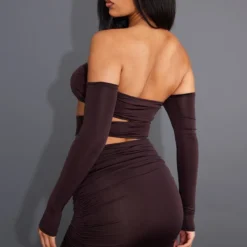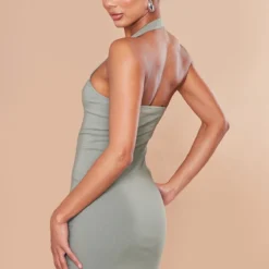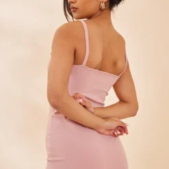 Robe Moulante Fendue Côtelée Texturée Rose Foncé à Bretelles