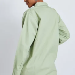 Robe Chemise Vert Sauge Ă Manches Longues Et Poches Cargo