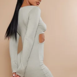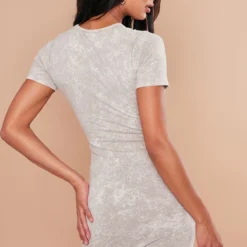 Robe Moulante Côtelée Gris Pierre à Corset Et Détail Coutures