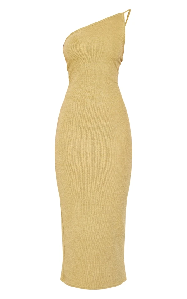 Robe Asymétrique Mi-longue En Maille Tricot Texturée Vert Olive