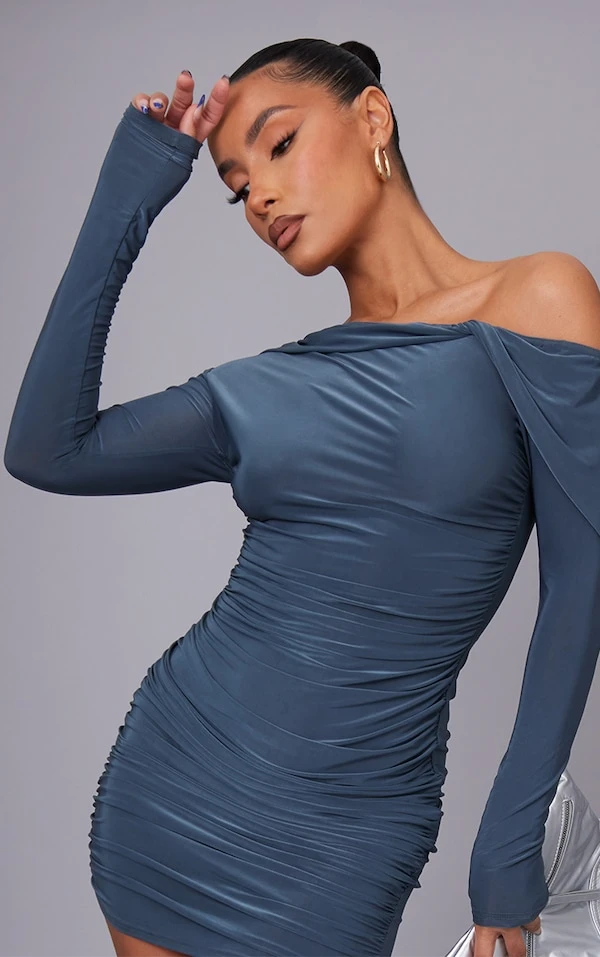 Canonissime cette robe asymétrique ! On adore sa couleur gris anthracite, sa coupe moulante qui vous met en valeur et ses fronces canon. Notre conseil mode ? La porter avec une paire de talons et quelques accessoires avant de rejoindre les copines sur le dancefloor. Vous êtes sensationnelle !