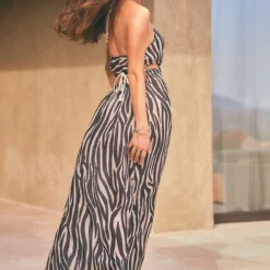 Totalement fans de la coupe moulante de cette robe au design asymétrique. On aime sa couleur noire qui se porte avec tout, sa matière en velours et son effet froncé, on l’adore. Portée avec des bottes et quelques accessoires, elle vous assure un look au top du style !