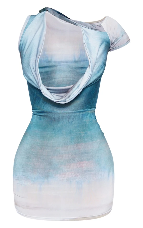 Robe asymétrique très moulante imprimé dégradé multicolore à col bénitier