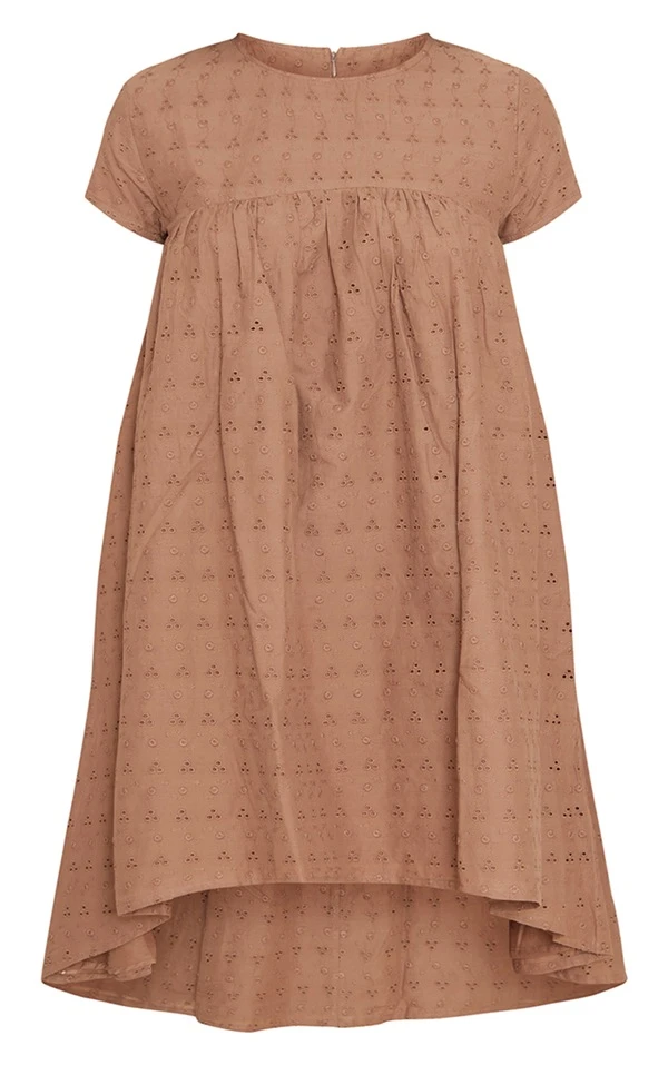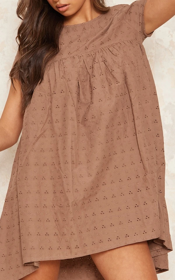 Robe babydoll en broderie anglaise taupe