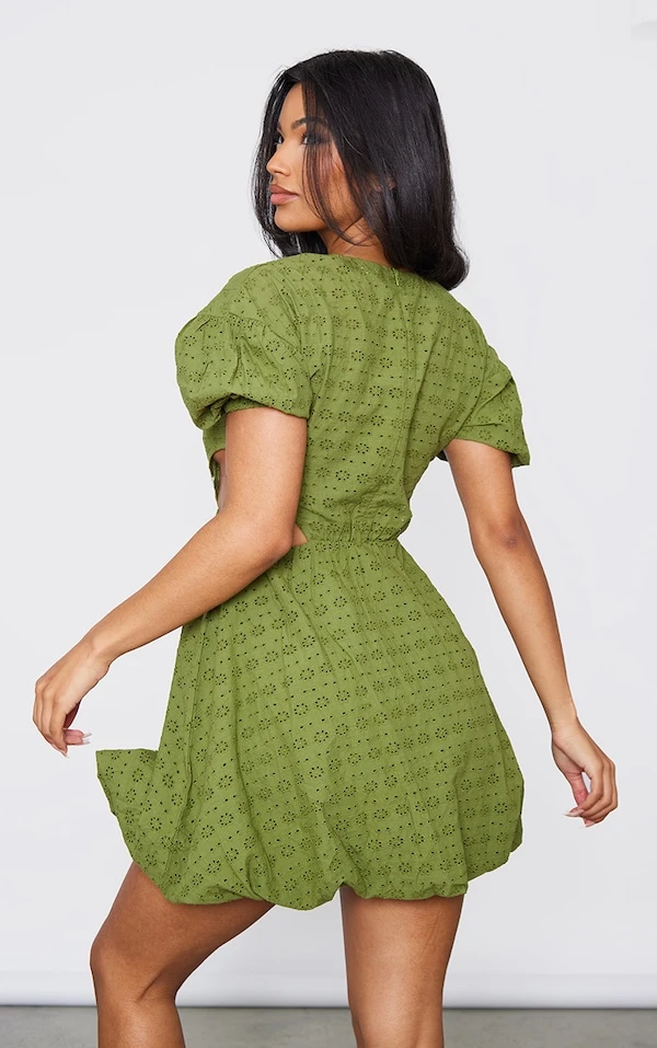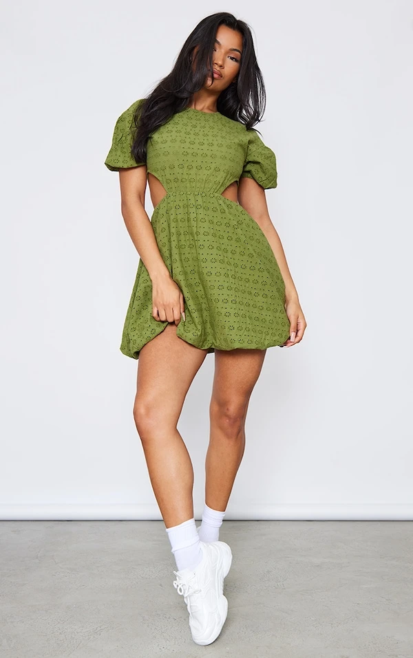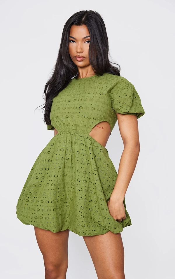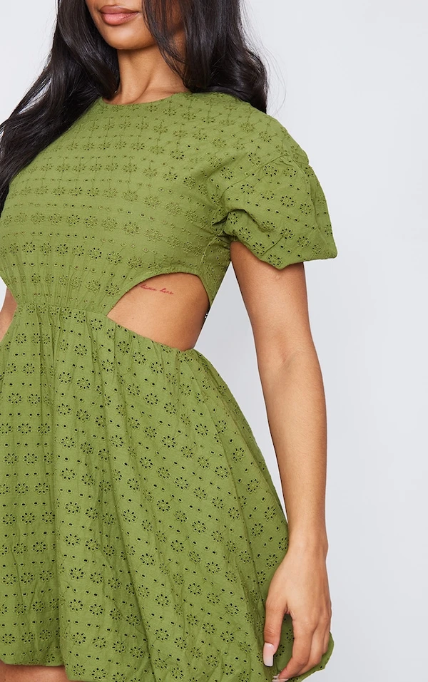 Robe Babydoll En Broderie Kaki à Découpes
