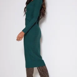 Robe bustier moulante en effet lin vert sauge à bordures frangées et liserés structurants