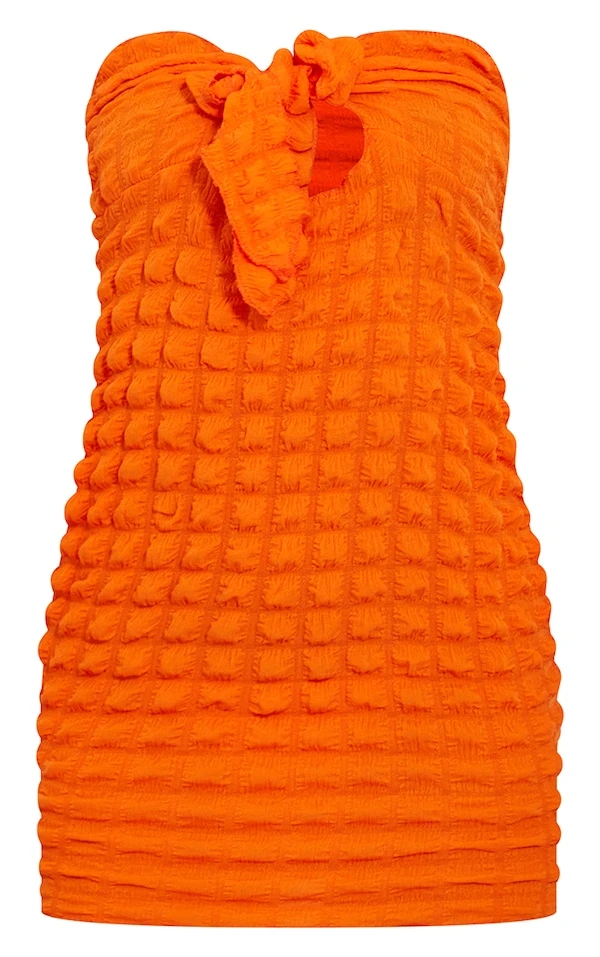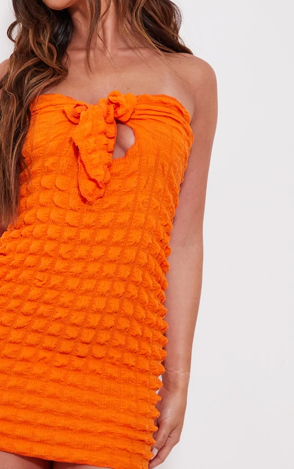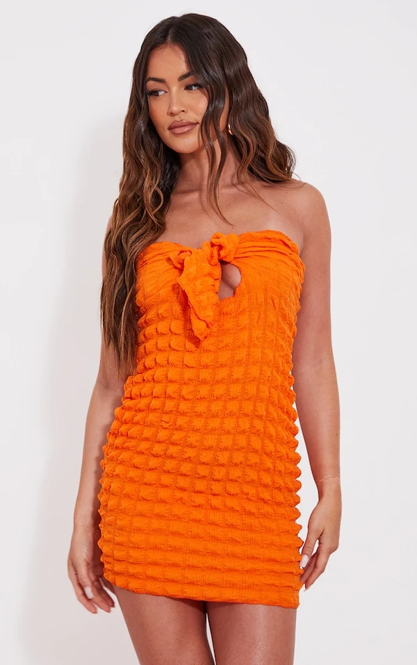 Cette robe pose bien le mood classy en un instant ! Avec sa couleur orange, sa matière texturée et son noeud sur l’avant, on l’aime un peu, beaucoup, passionnément. Elle se porte avec des talons hauts bleus pour briller lors d’un dîner chic.