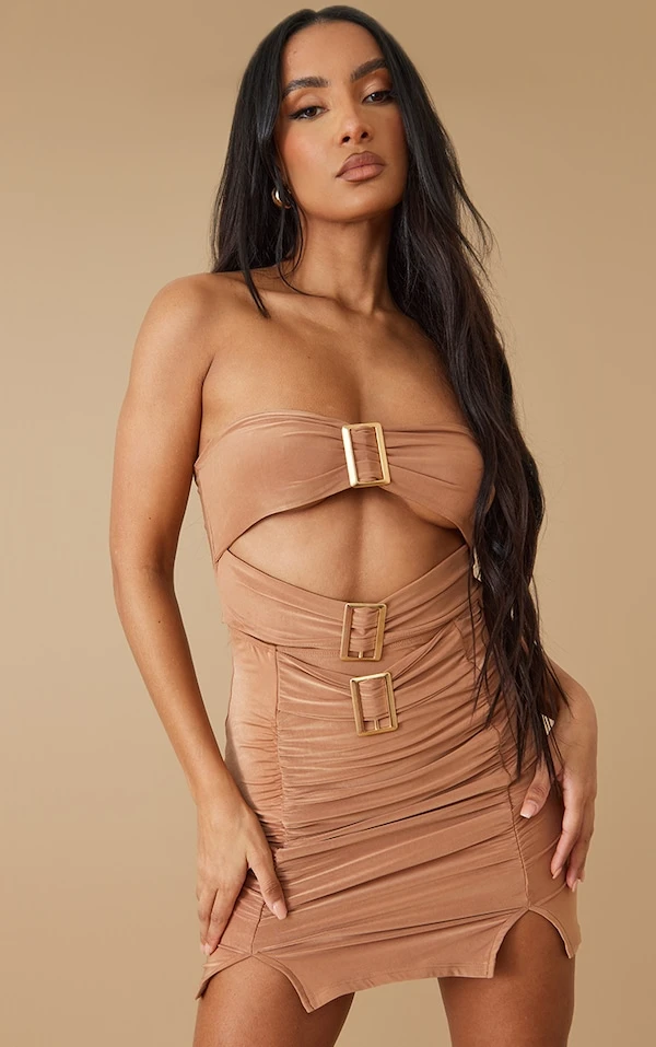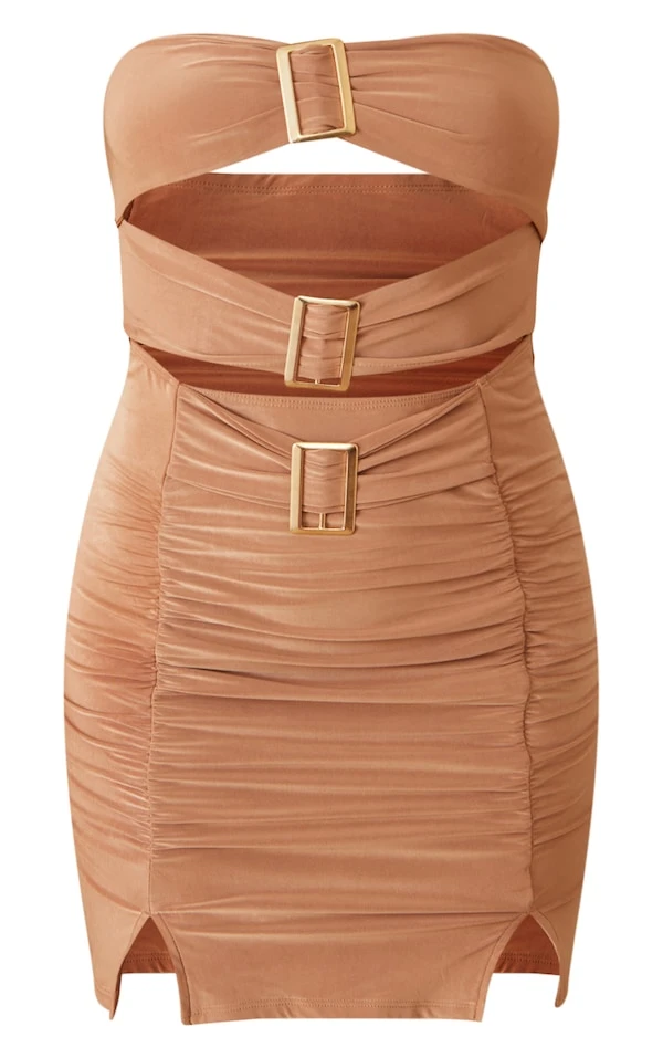 Direct dans le panier la robe bustier ! On adore son style très moulant flatteur, son coloris camel ultra doux et ses boucles XXL. C’est à porter avec une paire de talons hauts et quelques bijoux. Go la soirée entre copines.