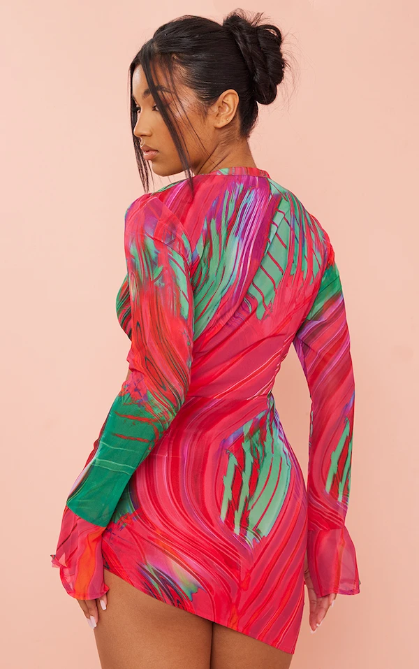 Robe Chemise Cache-coeur Moulante Multicolore Imprimé Abstrait