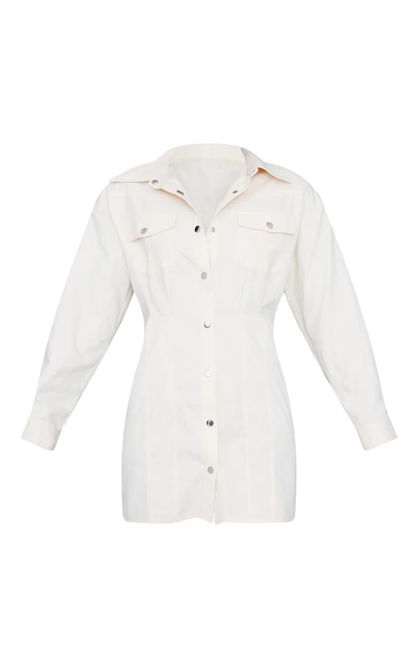 Robe chemise cargo sable à boutons-pression et taille ajustée