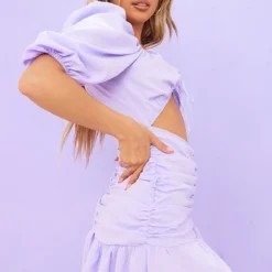 Robe chemise gris pierre à fronces et boutons asymétriques