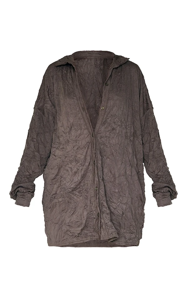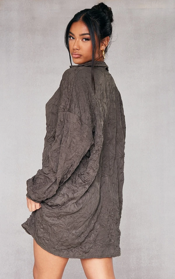 Robe chemise oversize plissée style froissé kaki