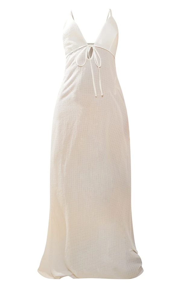 Robe de plage longue blanche crêpée à nouer
