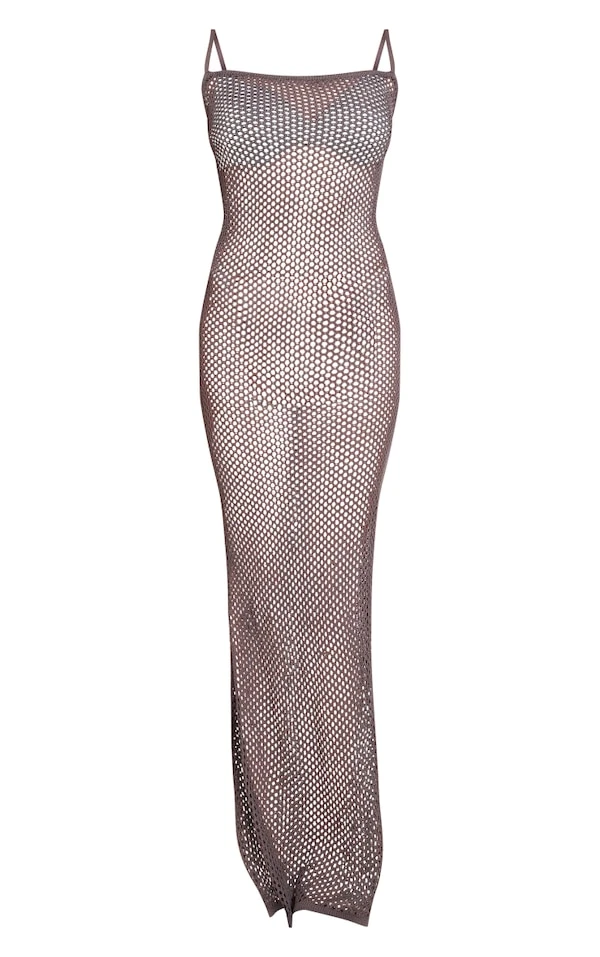 Robe de plage longue slim en maille crochet gris anthracite