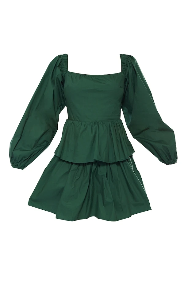 Robe Droite En Coton Vert Forêt à étages Et Manches Longues Détail Dos Noué