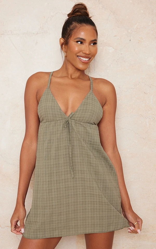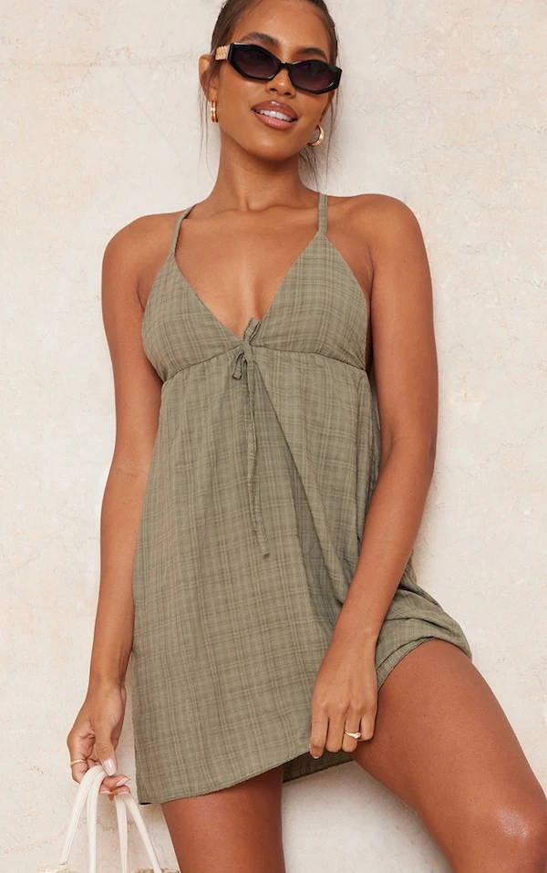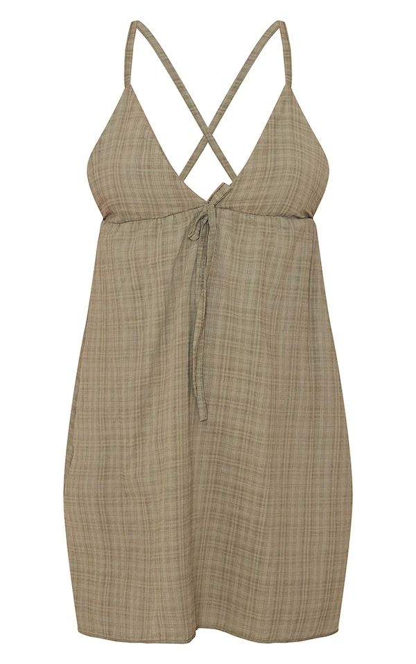 Robe droite kaki tissée à bretelles croisées dans le dos