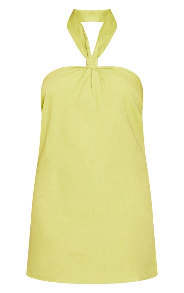 Robe droite vert olive effet lin à détail noeud et dos nu