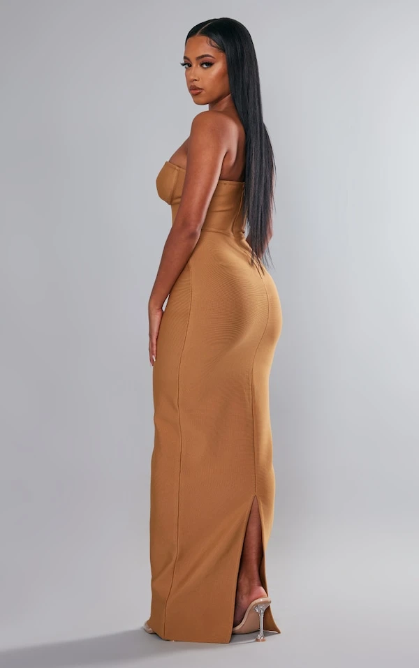 Divine, dans cette robe bustier à la coupe longue très classe ! Avec sa couleur camel délicieuse et son design à derrière fendu très cool, cette pièce est à shopper de suite. On aime la porter avec des talons et des bijoux dorés. Et vous, vous la portez avec quoi ?
