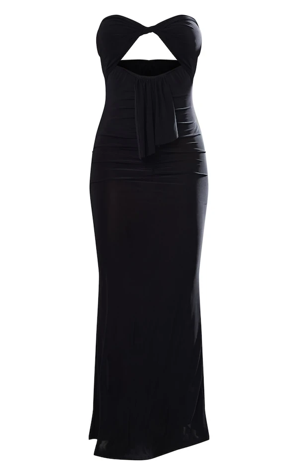 Impossible de faire plus glamour que cette robe ! Avec sa matière très moulante noire, son design bandeau à détail torsadé et sa coupe qui met en valeur la silhouette, on en est dingues. Elle se porte avec des talons hauts, des accessoires et un sac à main pour en mettre plein les yeux !