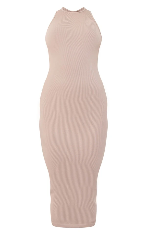 Robe longue côtelée structurée gris pierre détail contours à dos nageur