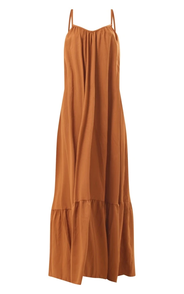 Canonissime cette robe longue ! On adore sa couleur rouille, son design superposé et ses bretelles. Notre conseil mode ? La porter avec une paire de sandales et une ceinture pour finaliser votre look du jour. What a babe !