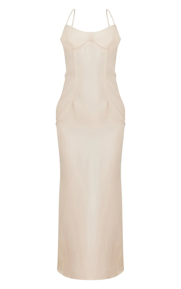 Robe longue satinée crème à armatures et bretelles
