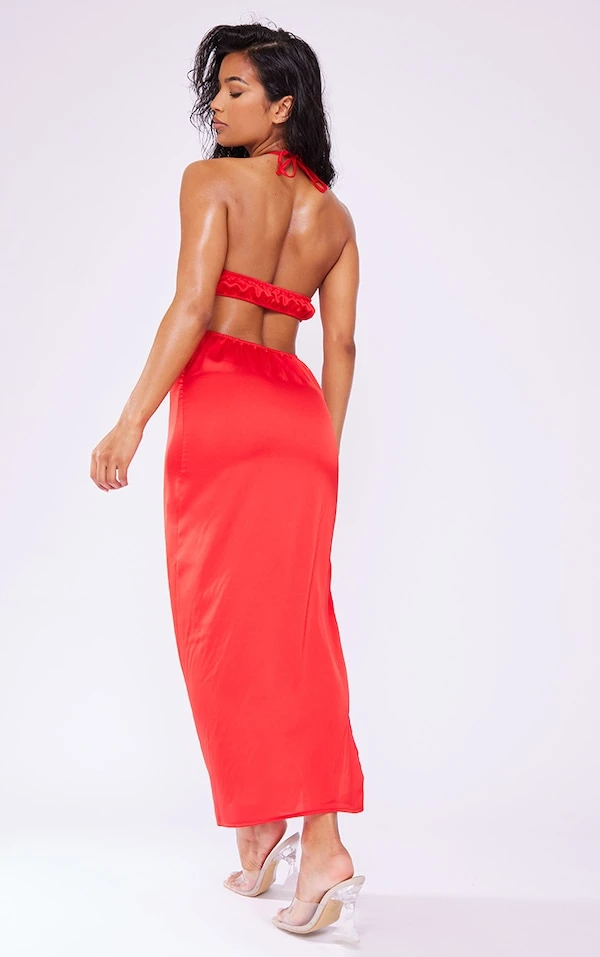 Gorgeous, dans cette robe longue ! On adore sa matière satinée so luxe, son coloris rouge fire et son design découpé et à bretelles fines. Elle se porte avec une simple paire de talons et une paire de créoles fines. Vous êtes incroyable dans cette tenue.