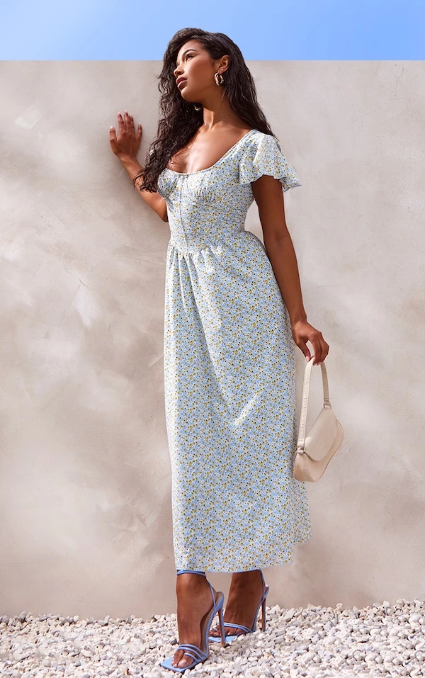 Look de bombe dans cette robe ! On adore sa coupe mi-longue, sa couleur bleue, son imprimé fleuri et le détail de son corset tendance. Portez-la avec des talons et quelques accessoires pour un look romantique 100% validé. Gorgeous !