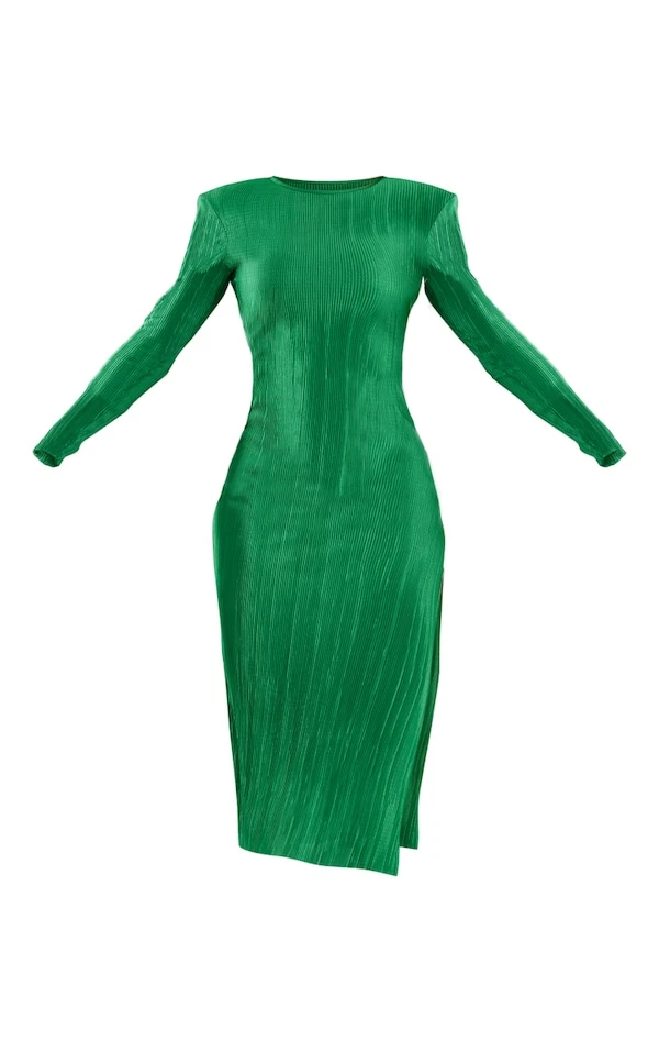 Romantique queen dans cette robe à la coupe mi-longue ! On adore son design plissé stylé, son coloris vert canon et son design à manches longues et design à fente. C’est à porter avec une paire de talons hauts et quelques access dorés.