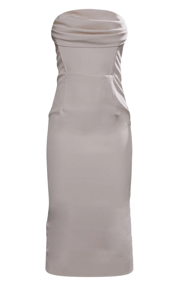 Une robe canon pour une fille canon ! On adore sa matière satinée crème, son col bénitier et son détail corset. Avec des talons métallisés et vos accessoires préférés, vous allez faire sensation !