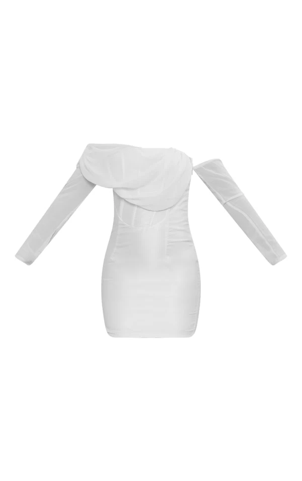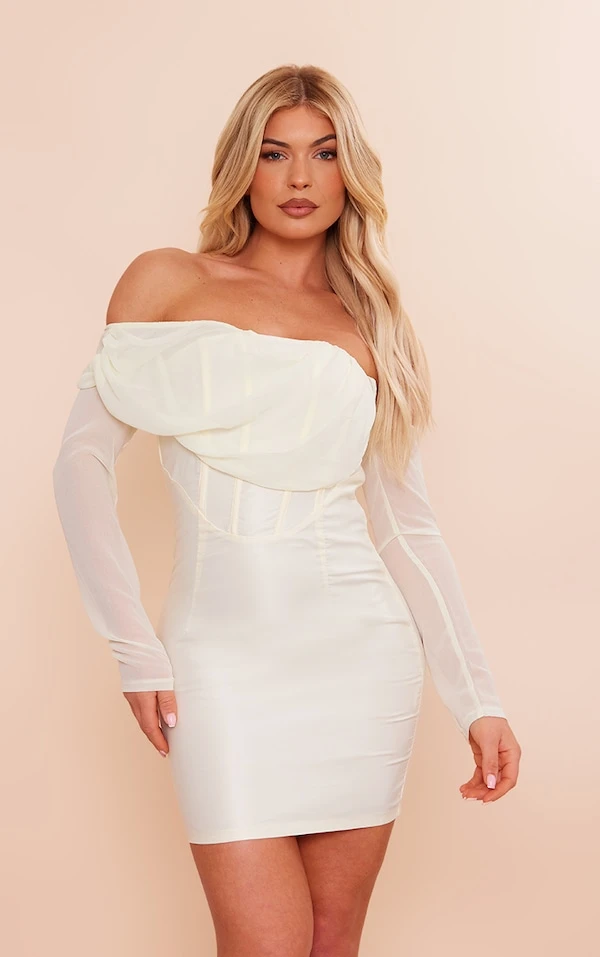 Robe moulante asymétrique en mousseline de soie satinée crème drapée