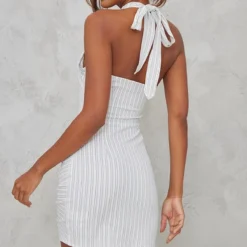 Robe moulante asymétrique gris pierre effet lin à détail noeud