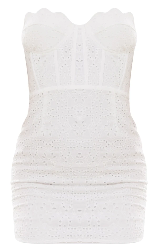 Robe moulante bustier en broderie anglaise blanche à ourlet festonné
