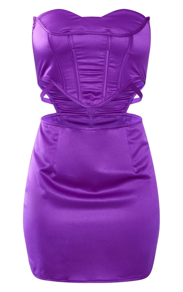 Robe moulante bustier satinée violette à corset découpé