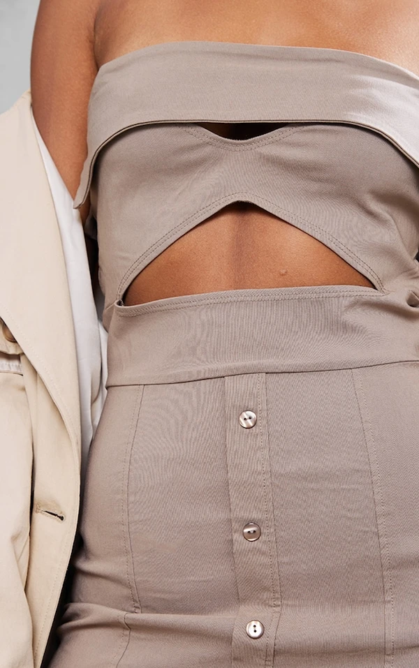Robe moulante bustier taupe à découpes et boutons