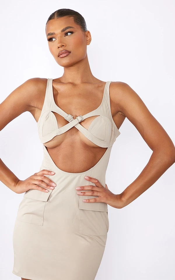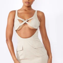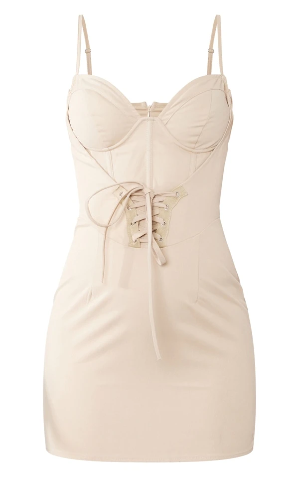 Robe moulante cargo beige à corset lacé
