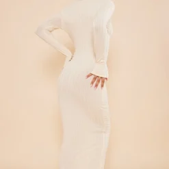 Robe moulante côtelée bleu marine à décolleté plongeant et bretelles