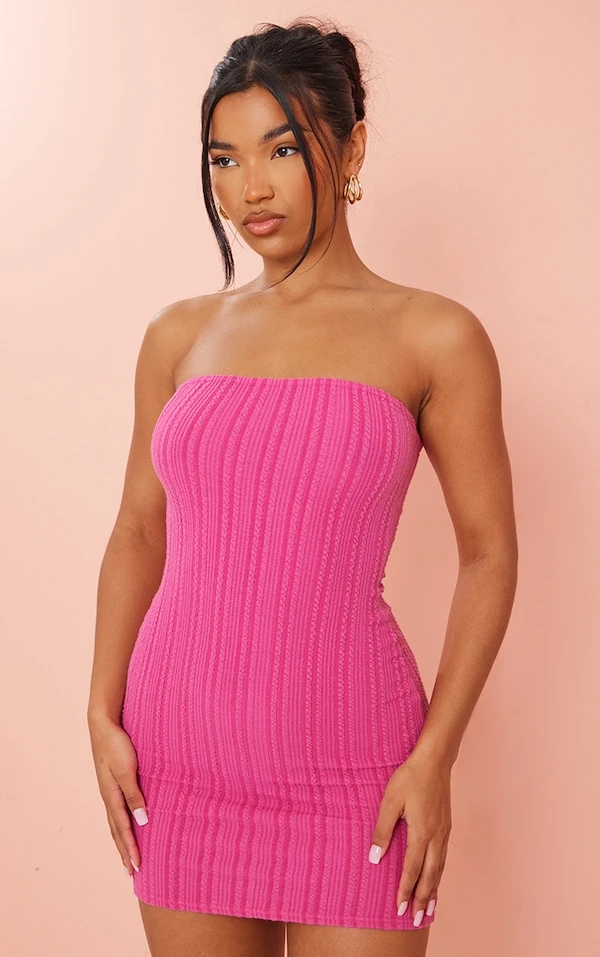 Tellement canon, cette robe moulante ! On a craqué pour son style bustier, sa matière texturée et son coloris fuchsia. Pour un look pop très coloré, il ne manque plus que des sandales en caoutchouc. Coeur sur vous !