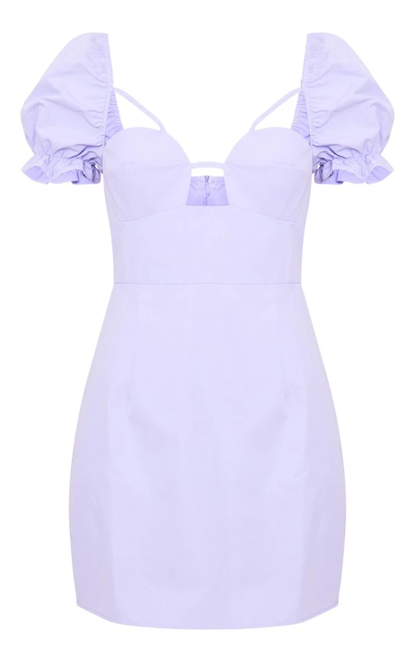 Robe moulante découpée lilas à manches bouffantes et détail bonnets
