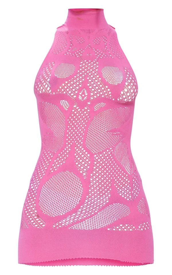 Robe moulante découpée rose sans coutures à col montant