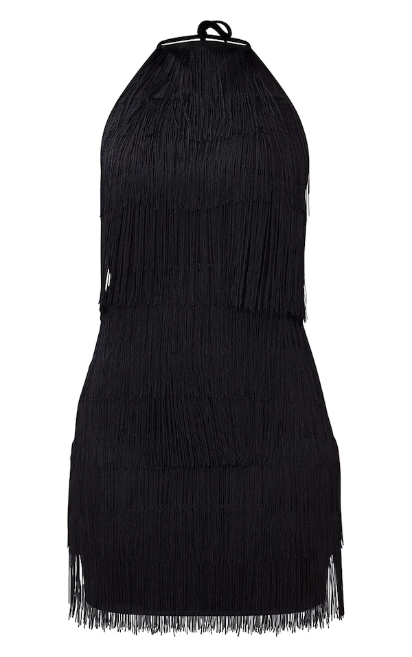 Robe moulante dos nu noire à franges