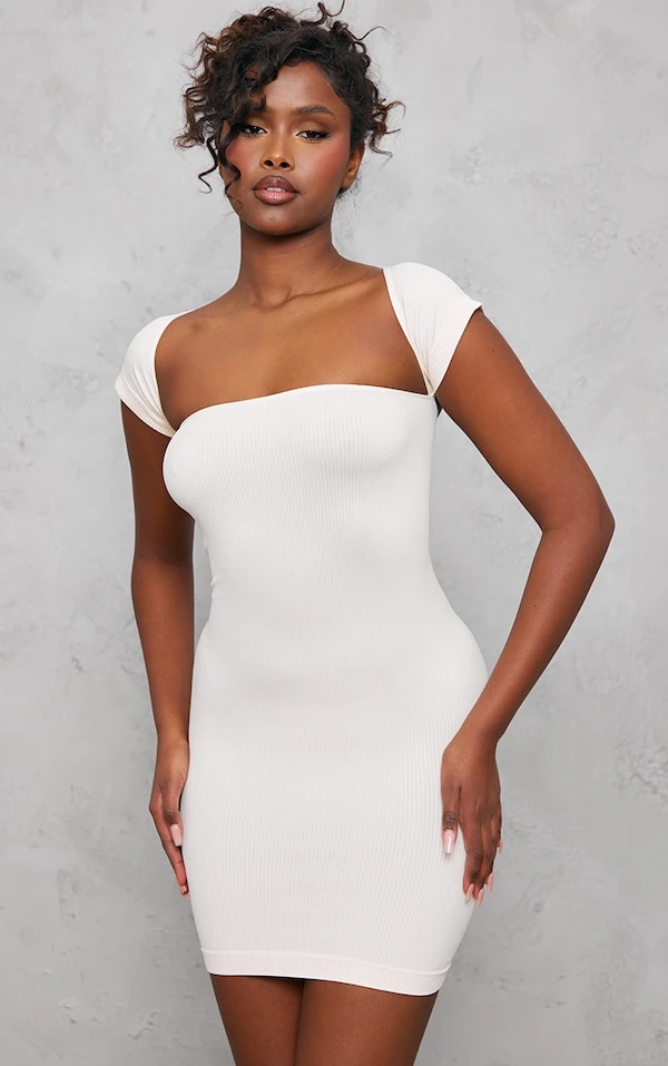 Trop belle dans cette robe structurée à la coupe moulante. Avec sa couleur écrue et son design à contours et à mancherons, on l’adore. Pour une soirée, on vous conseille de la porter avec une paire de mules et quelques accessoires strassés. Easy, vous ne trouvez pas ?