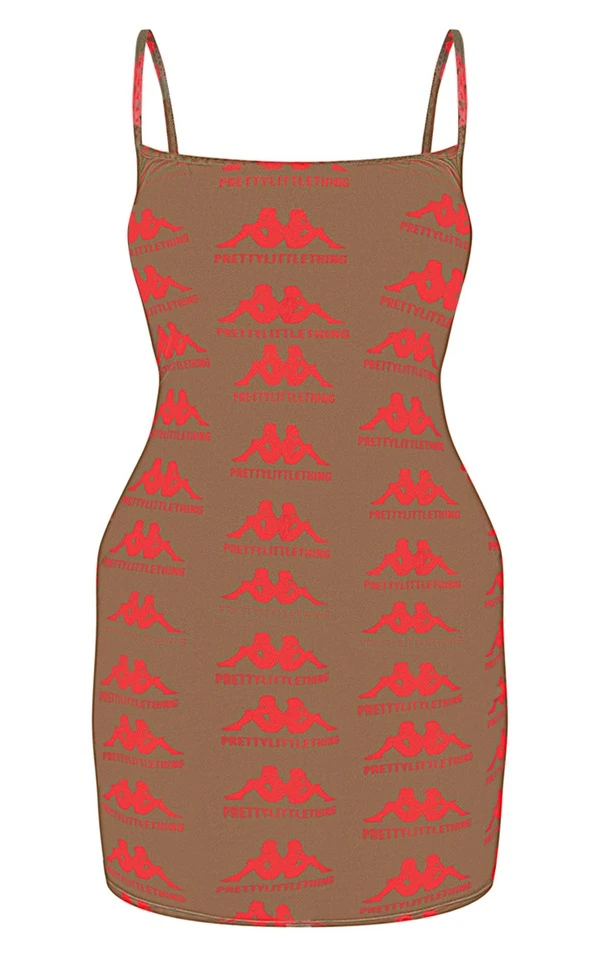 Robe moulante en mesh kaki à bretelles et monogrammes