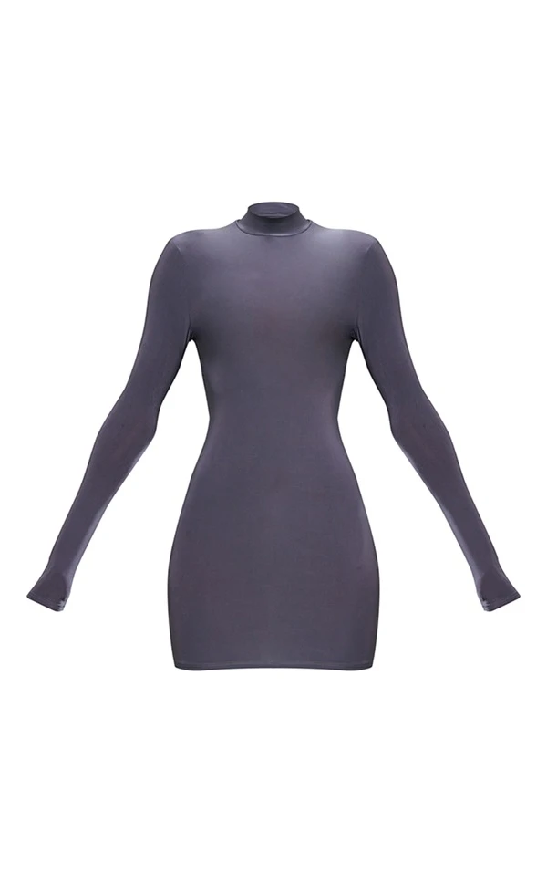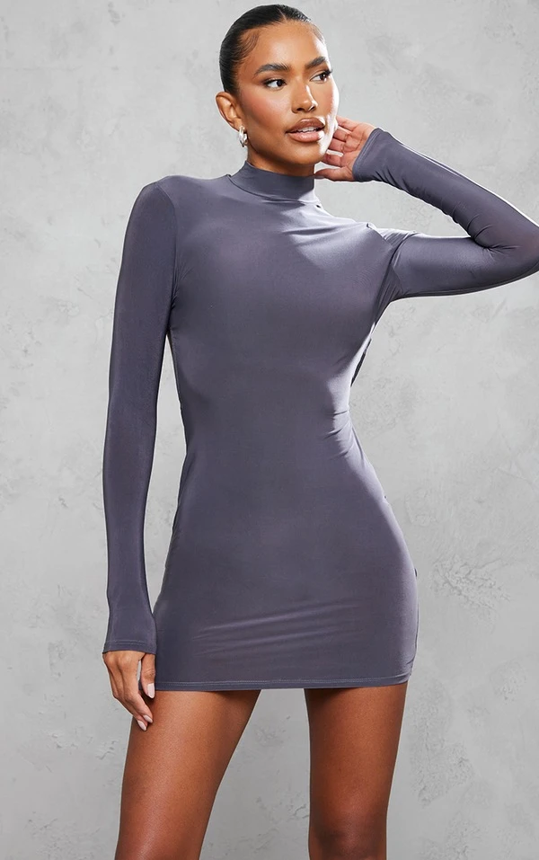 Robe moulante gris anthracite découpée dans le dos croisée à manches longues