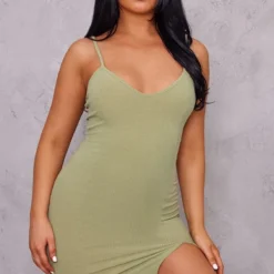 Robe moulante kaki à bretelles et ourlet fendu